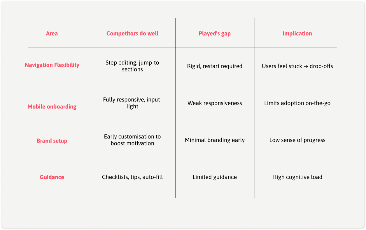 By focusing on flexibility and mobile-first design, Played could differentiate in a crowded market while solving its #1 conversion bottleneck. While customisation preferences would be updated over time based on user feedback and adoption.